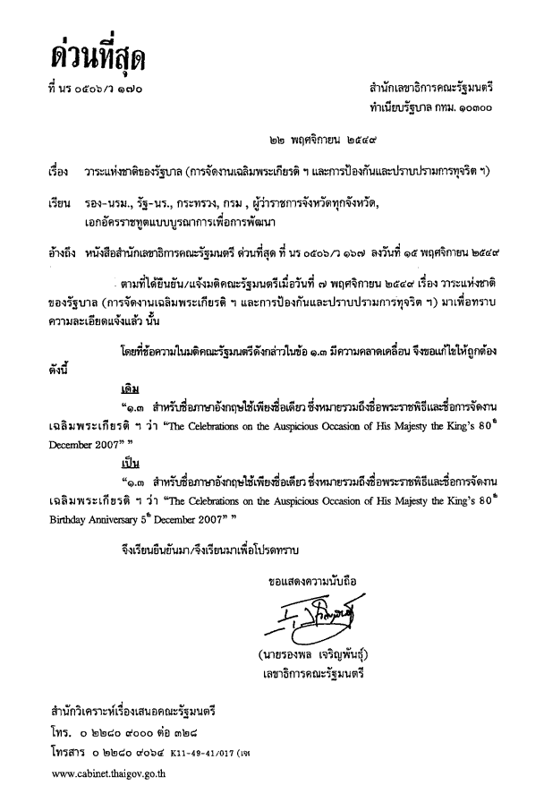 วาระแห่งชาติของรัฐบาล(การจัดงานเฉลิมพระเกียรติและการป้องกันและปราบปรามการทุจริตฯ)