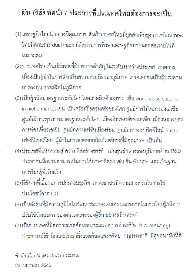 ฝัน (วิสัยทัศน์) 7 ประการที่ประเทศไทยต้องการจะเป็น