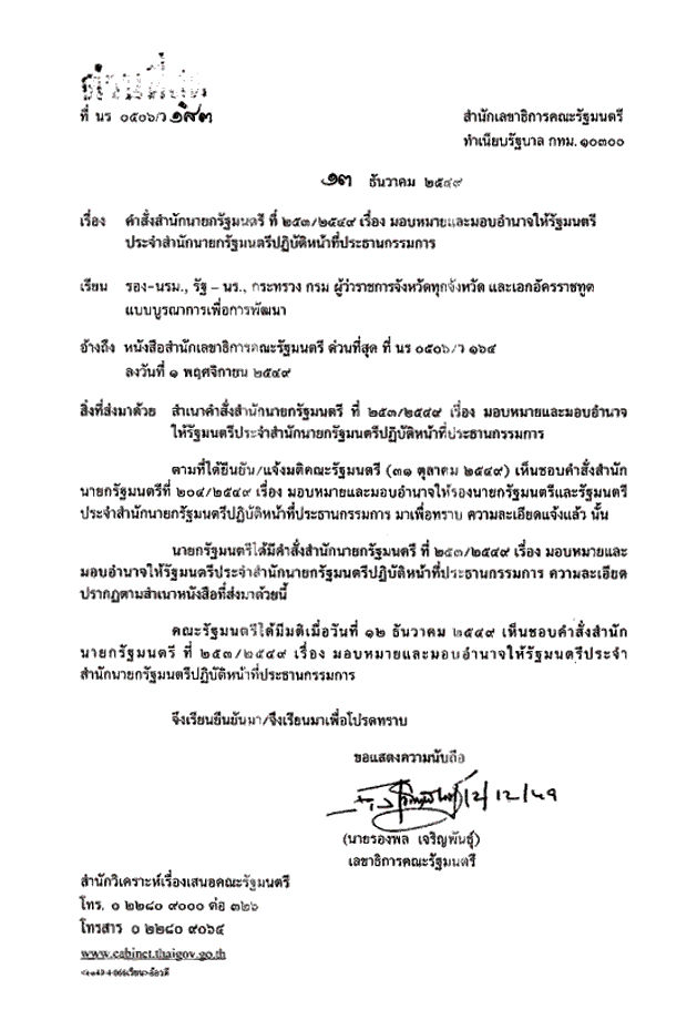 คำสั่งสำนักนายกรัฐมนตรีที่ 253/2549 เรื่องมอบหมายและมอบอำนาจให้รัฐมนตรีประจำสำนักนายกรัฐมนตรีปฏิบัติหน้าที่ประธานกรรมการ